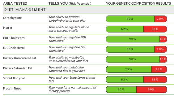 Sarah’s genes related to diet and nutrition (from the dietPower DNA Test Kit)
