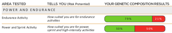- High genetic variations in Power Sprint – making activities like weight-lifting, circuit training and interval training less effective for Sarah.