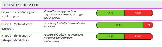Sarah’s genes related to hormone health (from the healthPower DNA Test Kit)