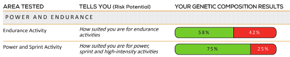 - Low genetic variations in Endurance – making this type of activity such as cycling, swimming, jogging, and yoga more favourable for Sarah.