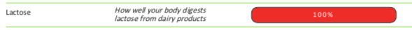 - High genetic variations in Food Tolerances – associated with a poor tolerance to alcohol, caffeine, gluten, lactose, salt and sugar cravings.